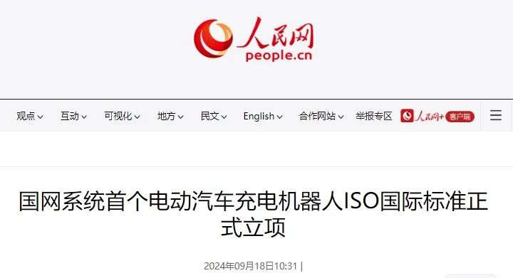 2024年,国网天津电科院申报的ISO国际标准《机器人技术服务机器人性能标准和相关测试方法第8部分:电动汽车充电机器人》正式获批立项,成国网系统首个电动汽车充电机器人ISO国际标准。