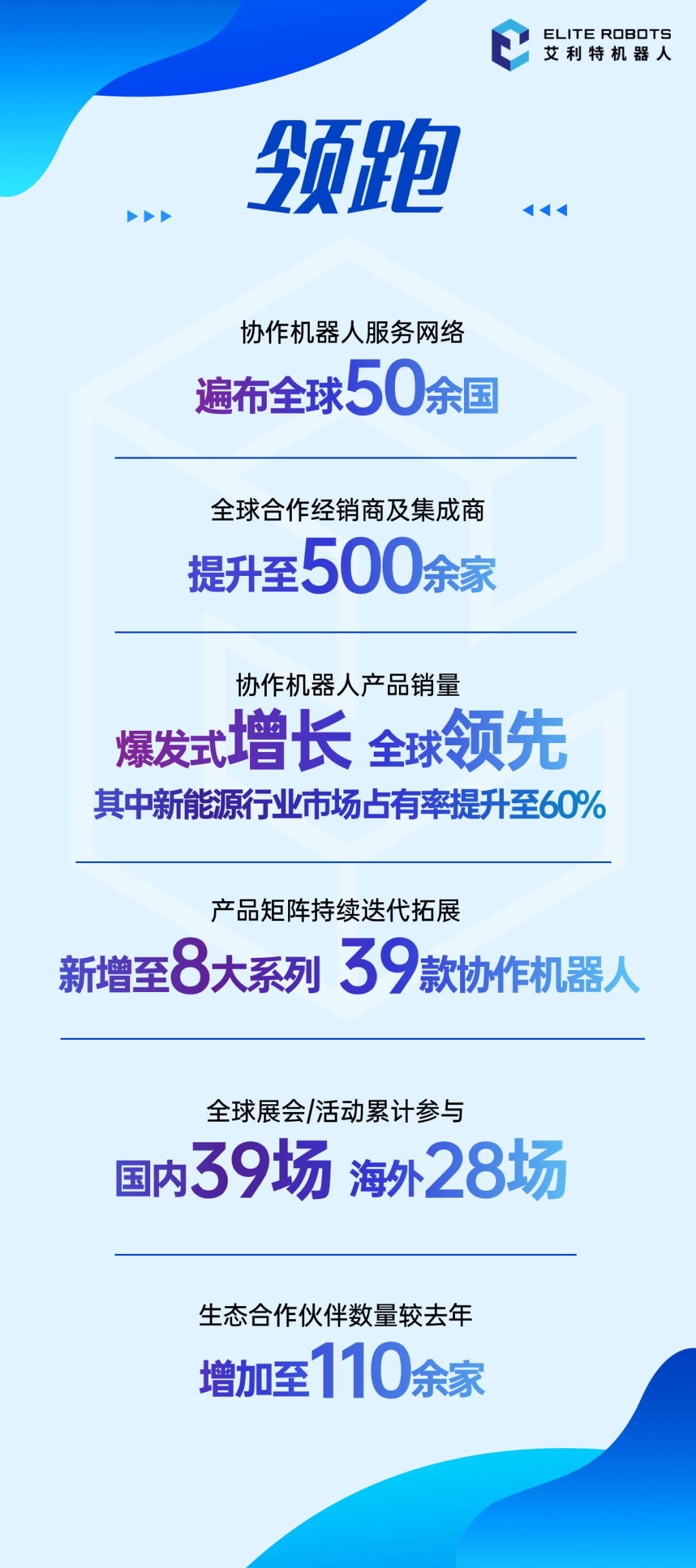 2023年,艾利特机器人深耕新领域、新场景,销量展现极强的爆发力,在“新能源”主战场,成绩表现亮眼。凭借强大的产品力、研发力、布局全球的展会、售后服务等组合拳,迎来了现象级热销。