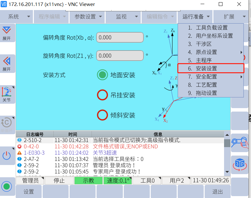 常用参数配置包括:IP,负载,重心,安装方式,机械零点确定,当我们拿到新机时需要做以上配置,确保机器人正常使用。
