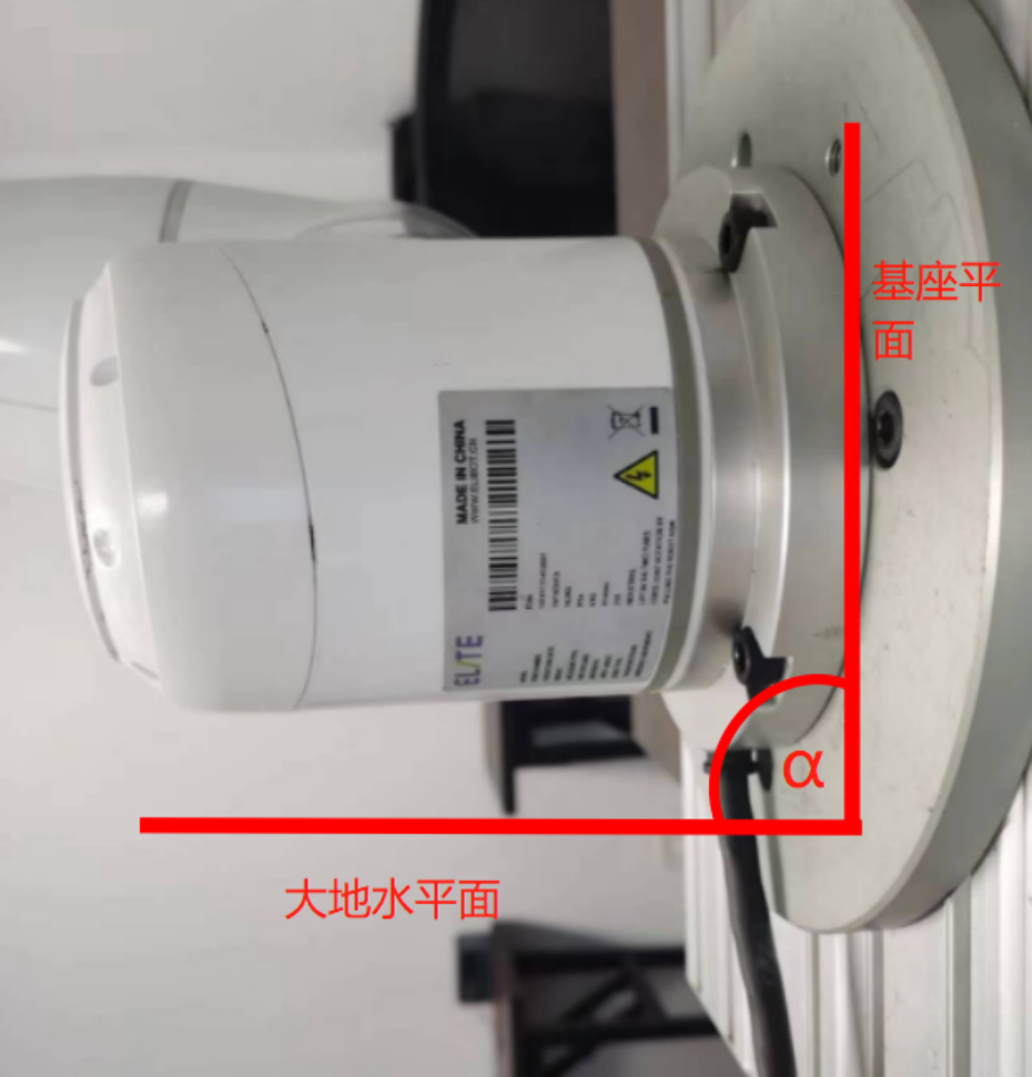 偏转角度指的是机器人基座平面与大地水平面的夹角α,如下图: