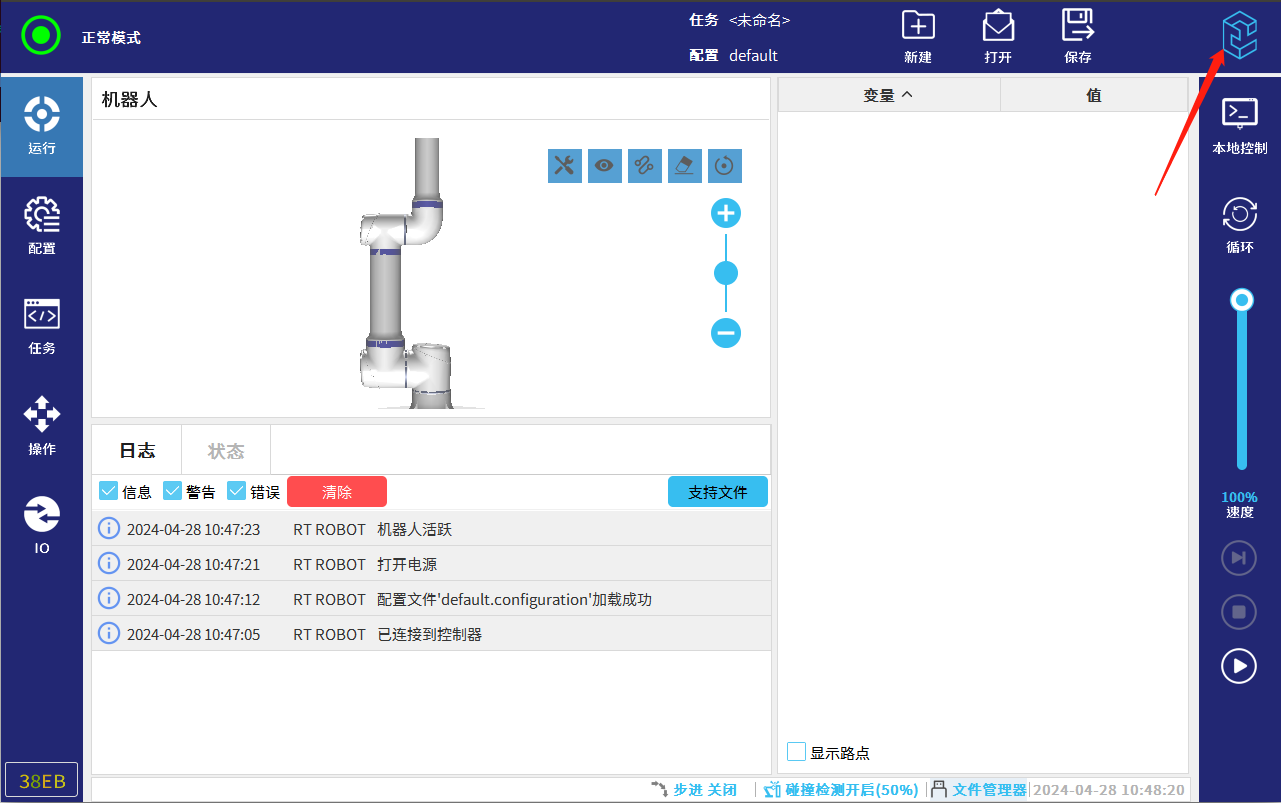 3.2. 不可以执行运动指令(如movej命令)、不可以执行耗时指令(如sleep等),不可以执行无法退出的命令(如死循环等)