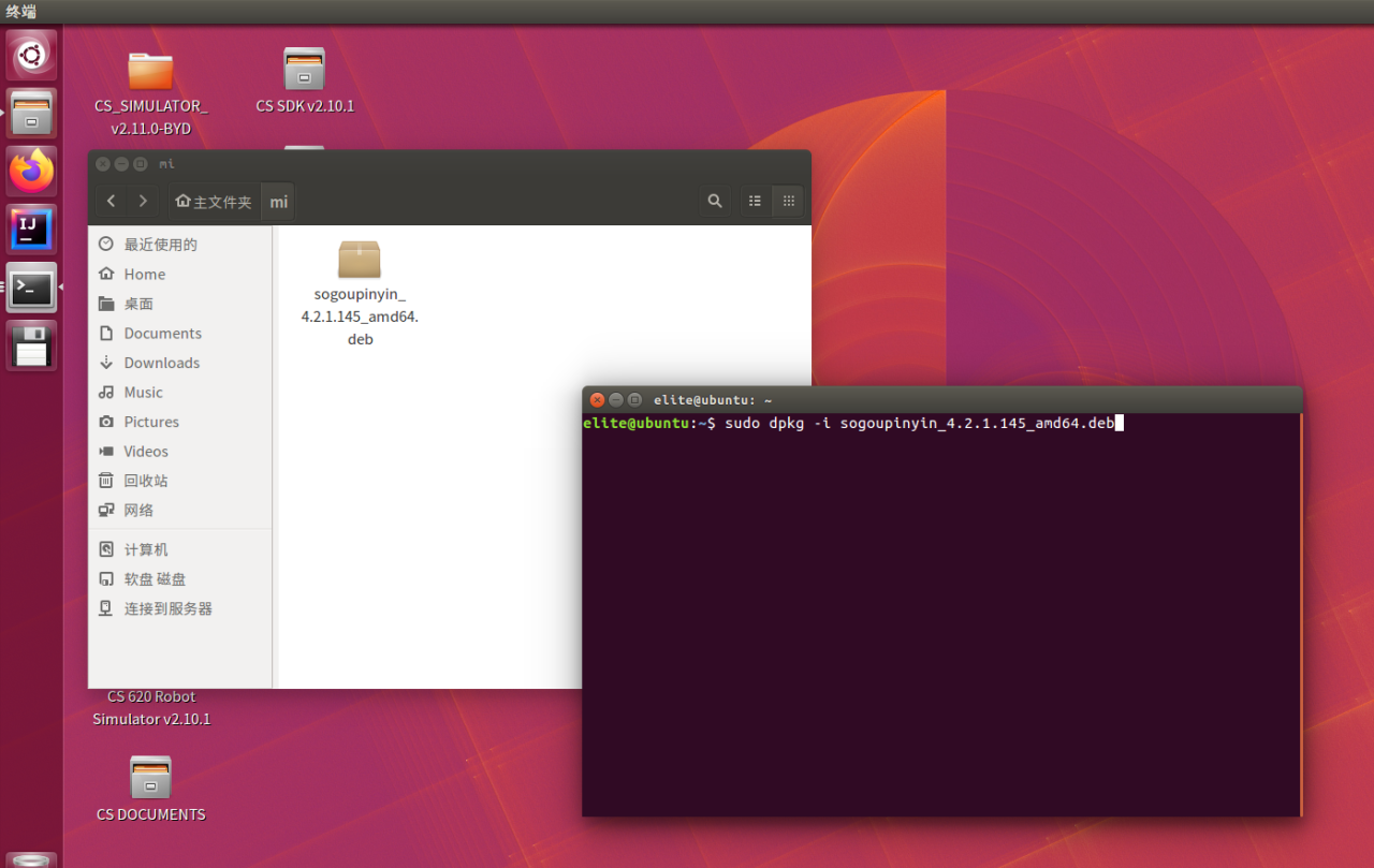 cd到安装包的目录,然后sudo dpkg -i sogoupinyin_4.0.1.2800_x86_64.deb 进行回车安 装。(sogoupinyin_4.0.1.2800_x86_64.deb为你下载的安装包名称 可以重命名复制粘贴)