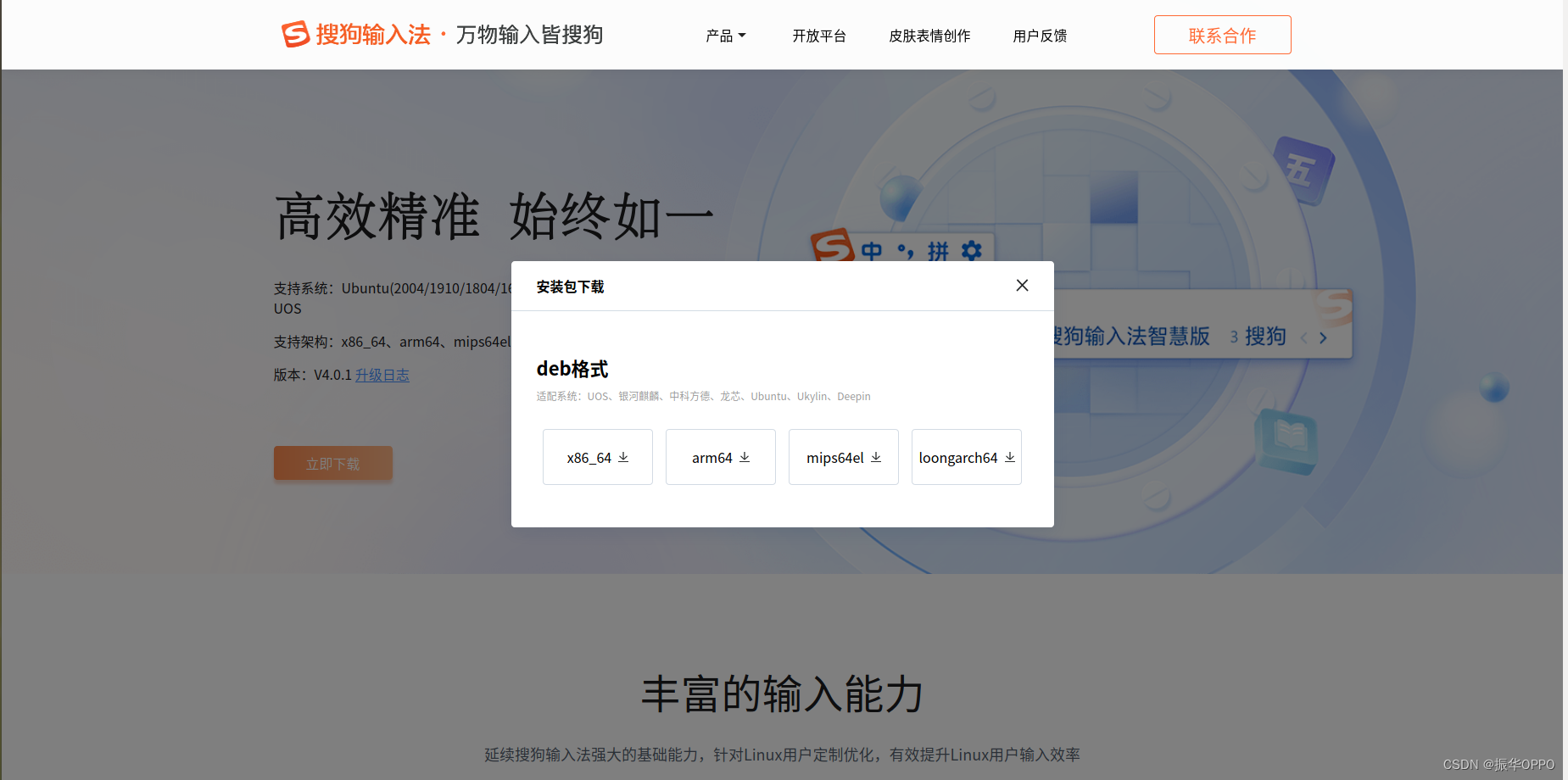 进入搜狗输入法linux-首页,选择适合你ubuntu架构的版本download。