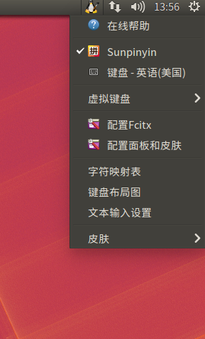 (4)重启虚拟机, 重新启动以后,你会发现在屏幕右上方有了企鹅输入fcitx