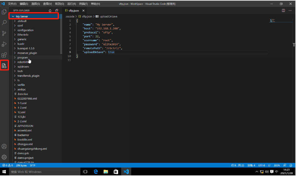 在sftp侧边栏可以直接读取机器人程序并下载。