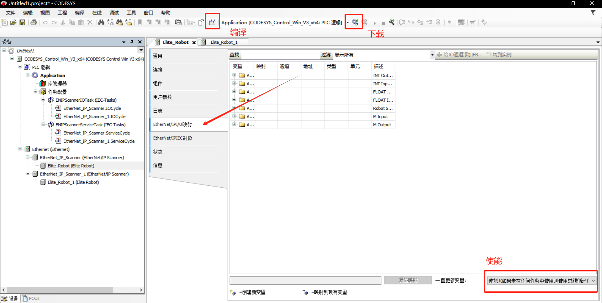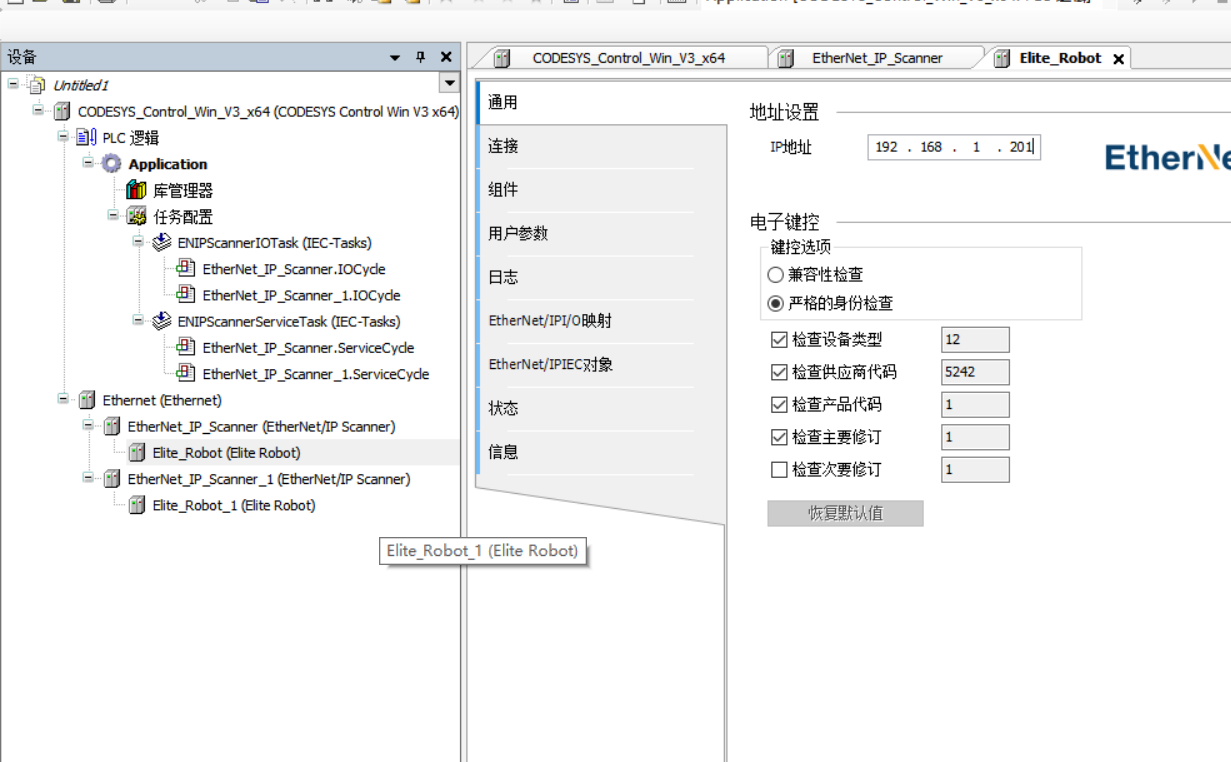 codesys与两台EC机器人进行EIP通讯