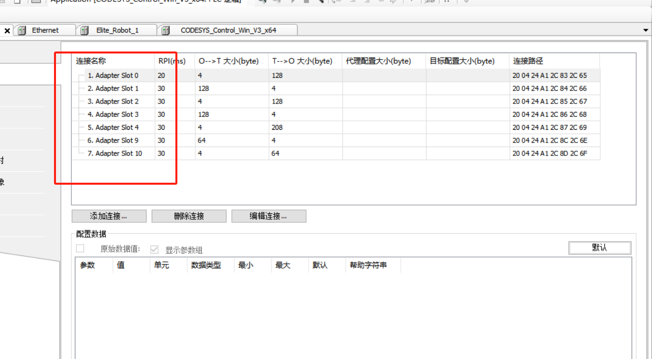 Adapter Slot 0: 32 个 32 位 int 输出寄存器,地址范围 [0,31] 传输方向 T->O(elite--codesys)