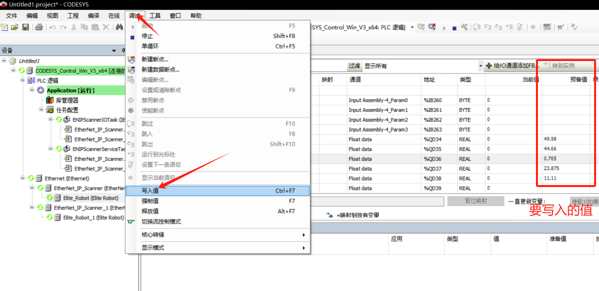 答:需要在调试页面进行手动写入值