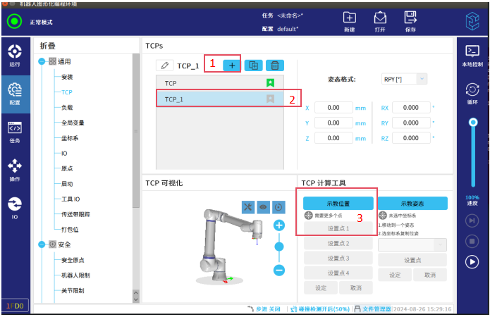 3. 示教TCP位置,总共4个位置。