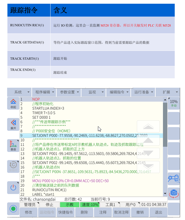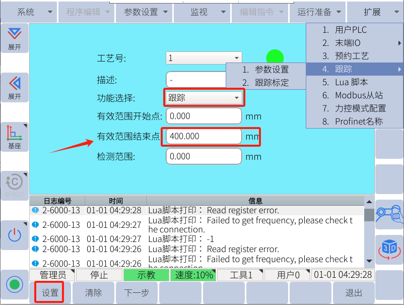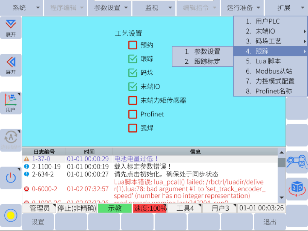 然后可以在 扩展--跟踪 中设定传送带跟踪参数和跟踪标定
