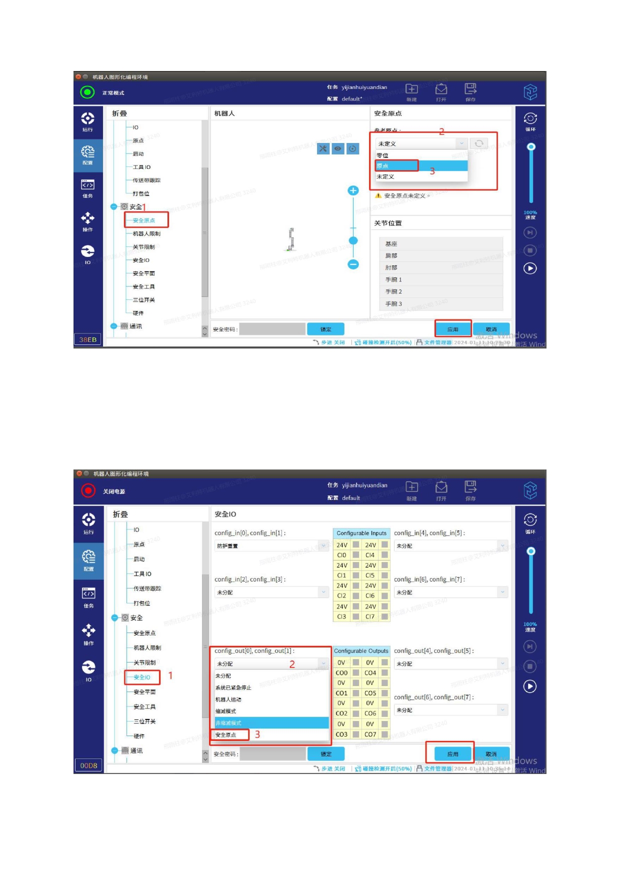 安全原点信号配置步骤:
