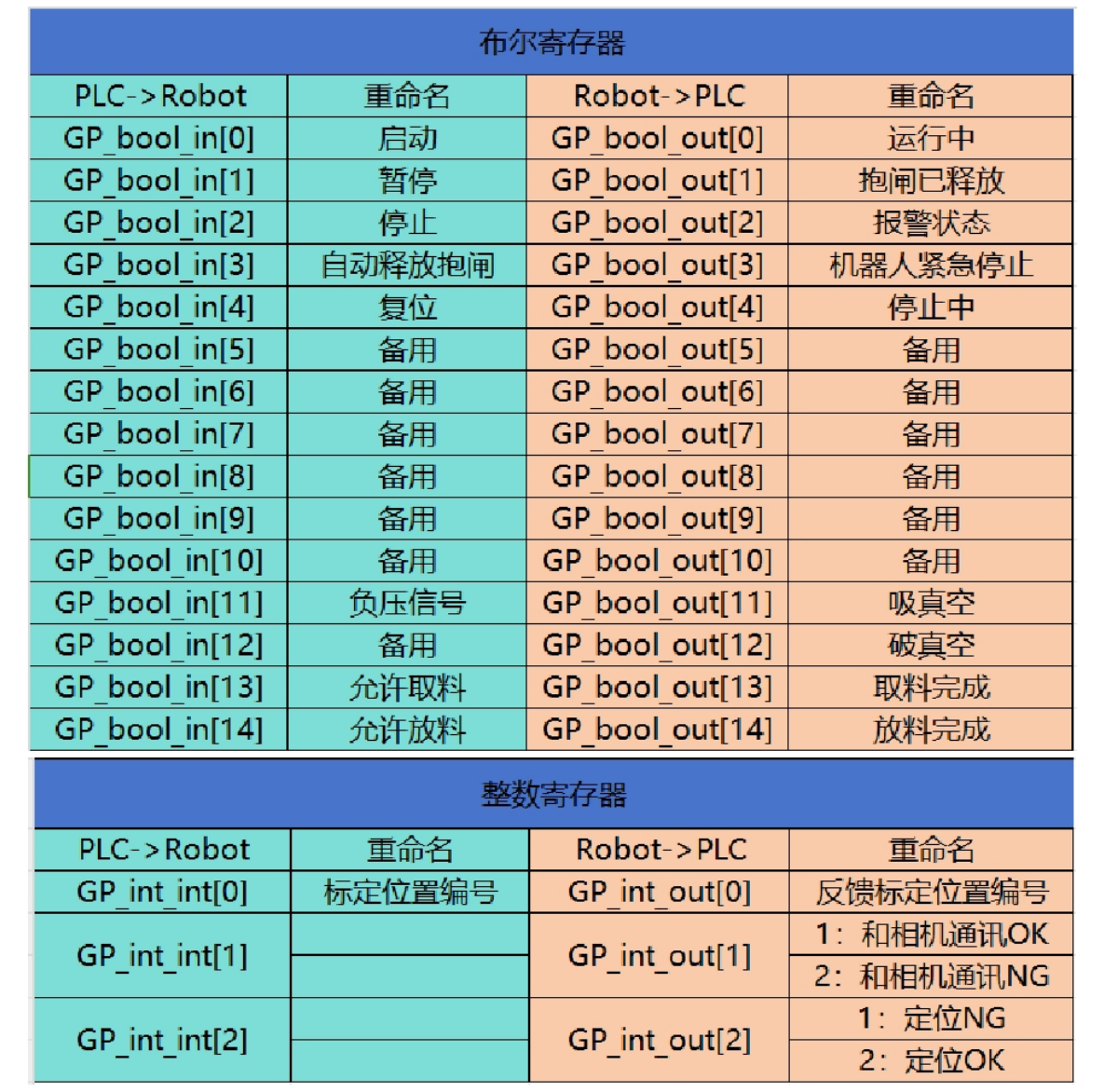 PLC 通过标定位置编号赋值,让机器人执行对应标定位置,机器人到达位置后,并反馈位置标