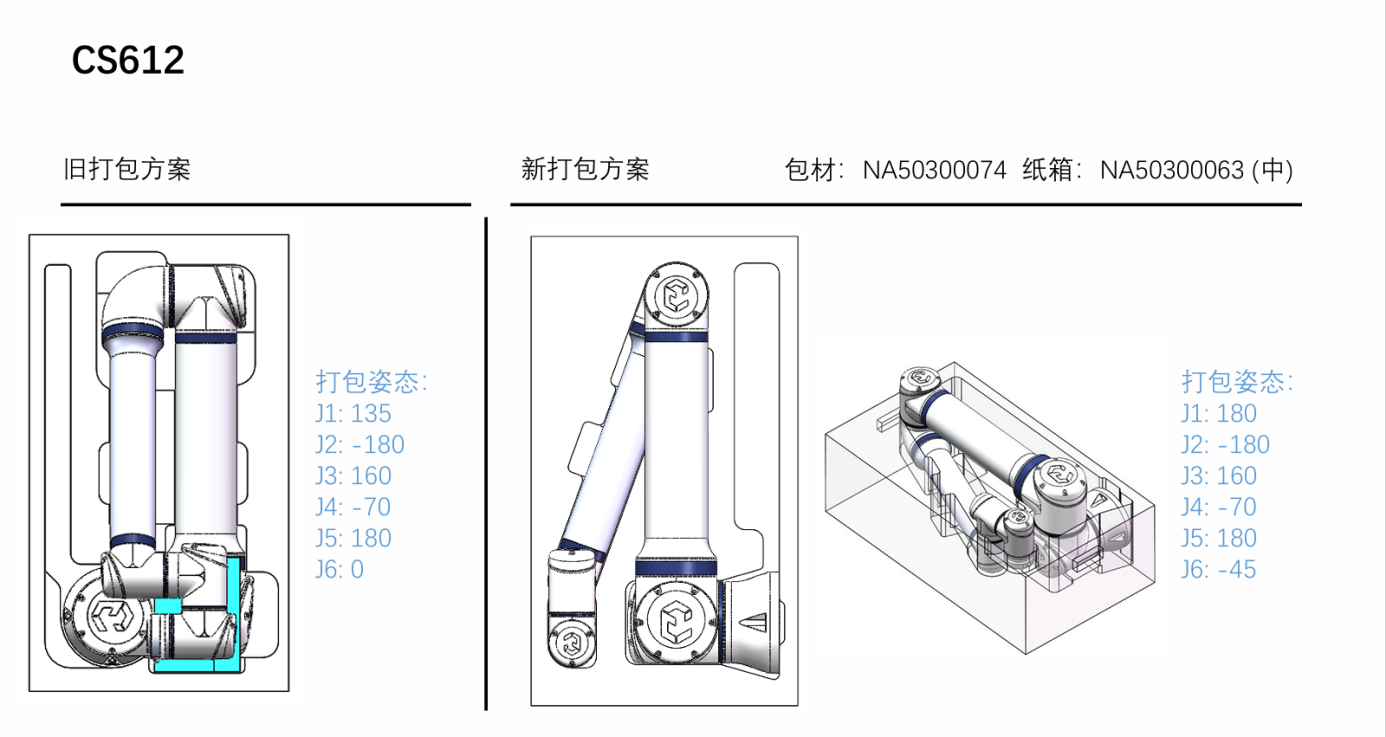 5.运输过程中需要机器人的2 3轴不要受力,有支撑,合理的打包姿态运输能能够有效的避免机器人抖动。打包姿态如图3-1: