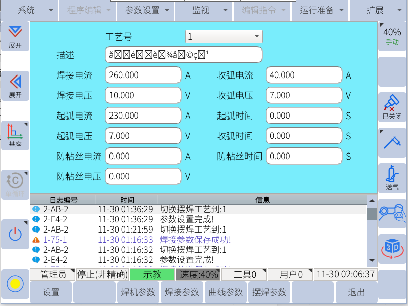 3. ARCSET焊接条件设置:可直接更改焊接的电流电压。