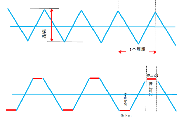 停止时间:停止点1表示Sin摆焊接的最高点,停止点2表示Sin摆焊接的最低点