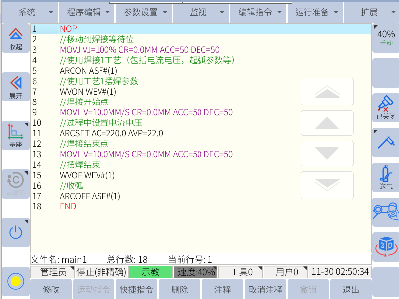 当出现“已关闭”时,表示JBI中的焊接语句均不生效。只能演示出实际的焊接路径,不能进行焊接。