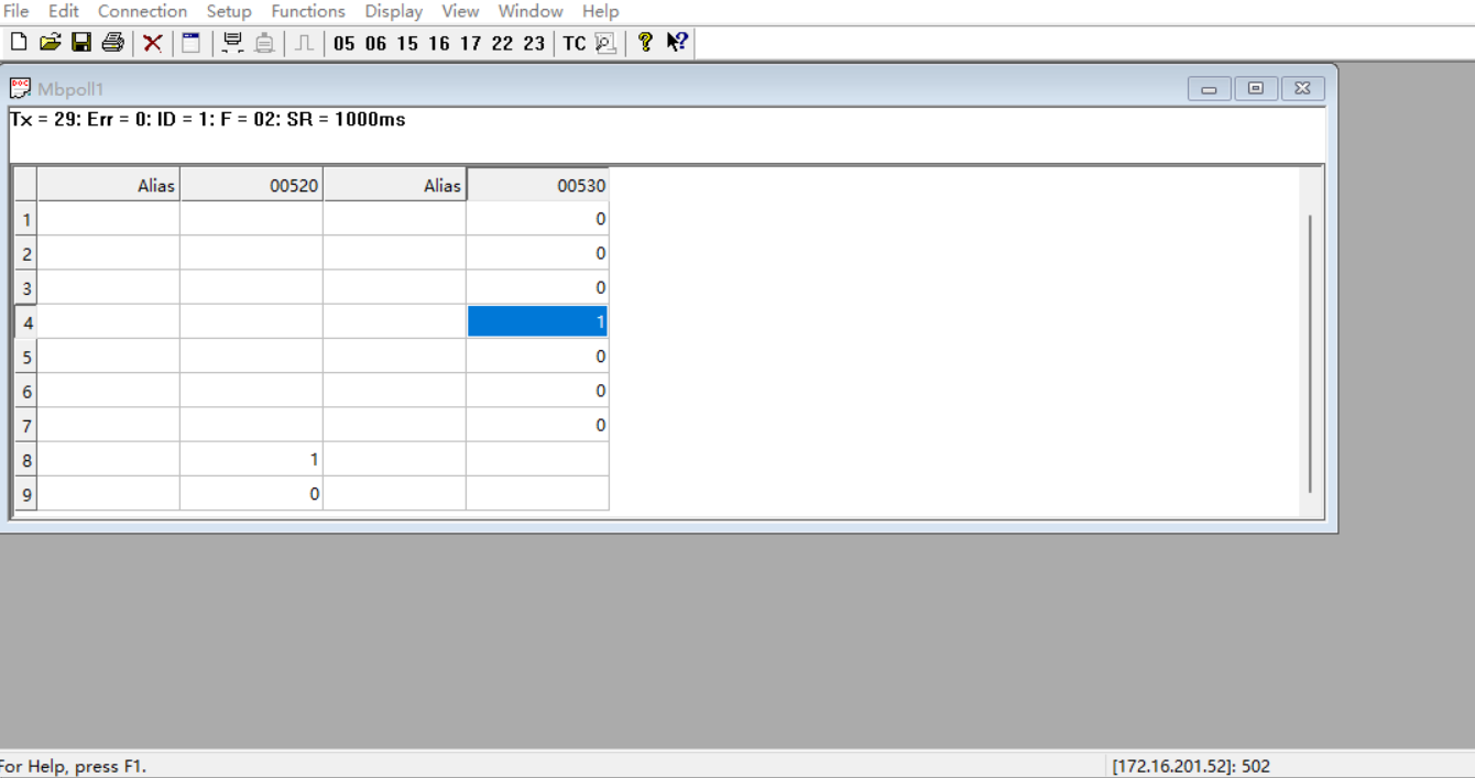 网络助手端直接读取528及534当前状态为1