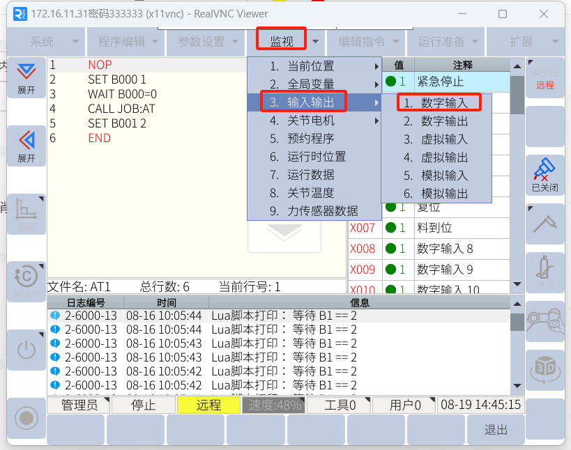 打开机器人监视-输入输出-数字输入