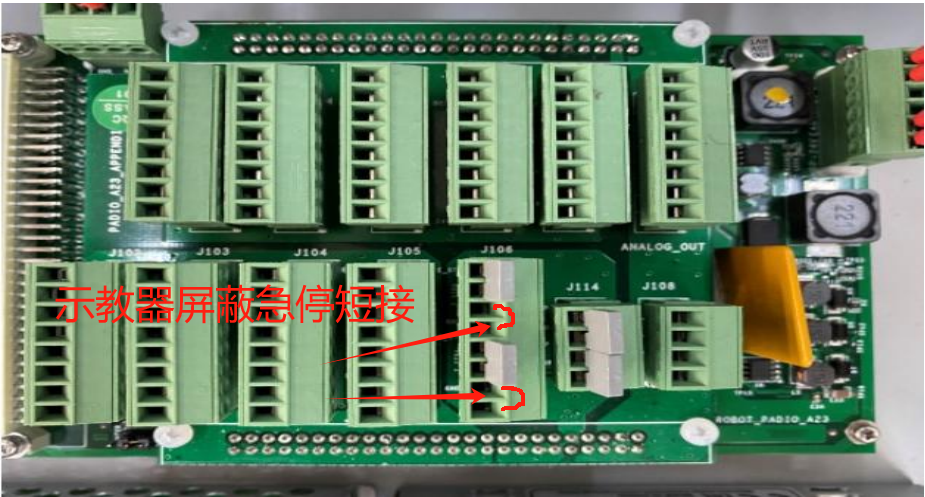 再将控制柜内示教器的急停信号进行短接