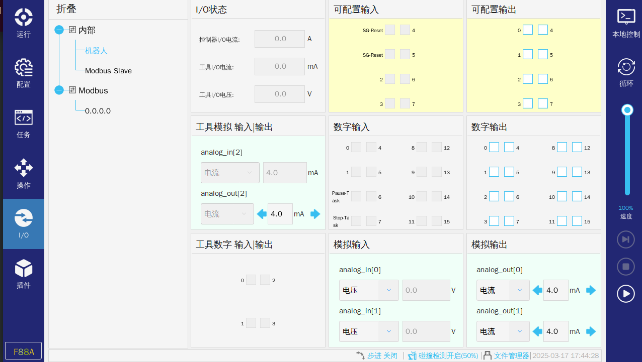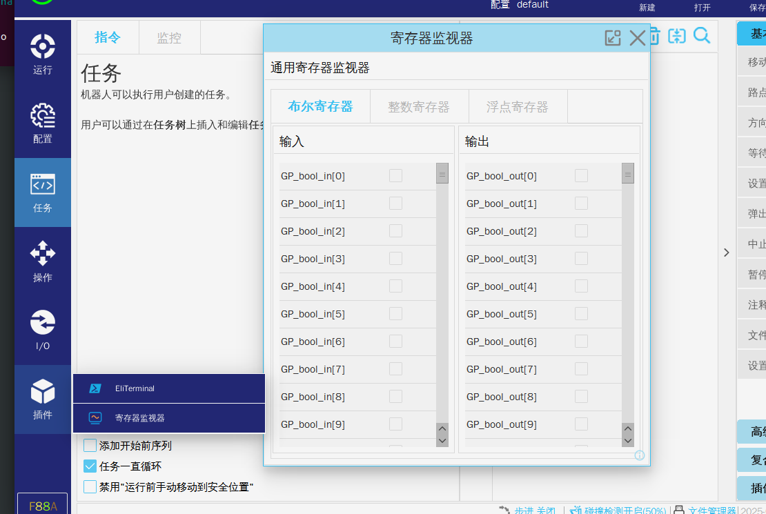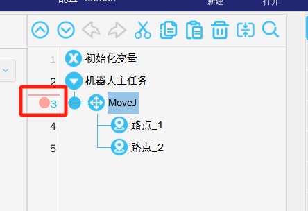 2.运行模式,如果是正常模式则需要让任务运行(左上角处于“运行中“),则机器人才会根据任务来执行需要动作。