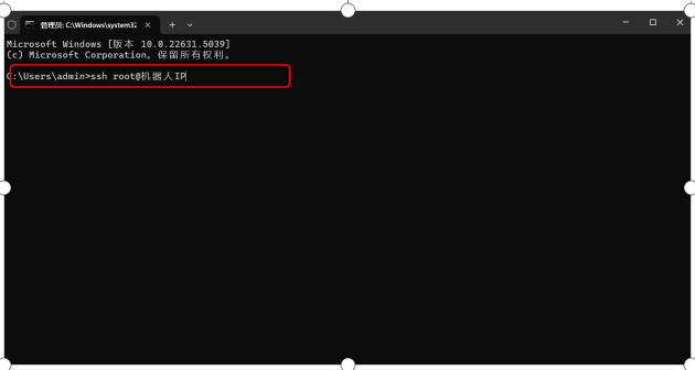 第一步:在电脑上按住Windows+R键输入CMD进去图-1界面,通过“ssh root@机器人X86_IP”登录到控制器内部。ssh登录密码为elibot。如图-1红框所示所示。