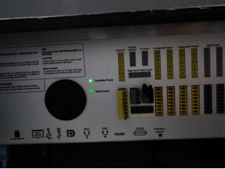 ● 按下示教器开机按钮后,观察下图两个指示灯是否亮起,两个都亮则Safe IO板异常