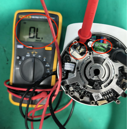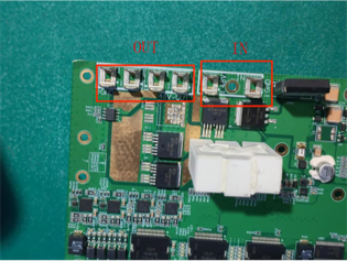 (1)通过三根电机线分别测量外壳、测量 48V 正极的阻抗,可判断驱动板是否短路;正常状态下所有阻抗均趋近无穷大,任何一根线出现低阻抗,即代表驱动板内部功率器件击穿或线路短路