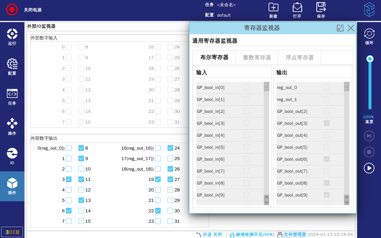 注:该功能使用前提也需要在配置——IO——选择”布尔寄存器”里定义过名称的才会显示