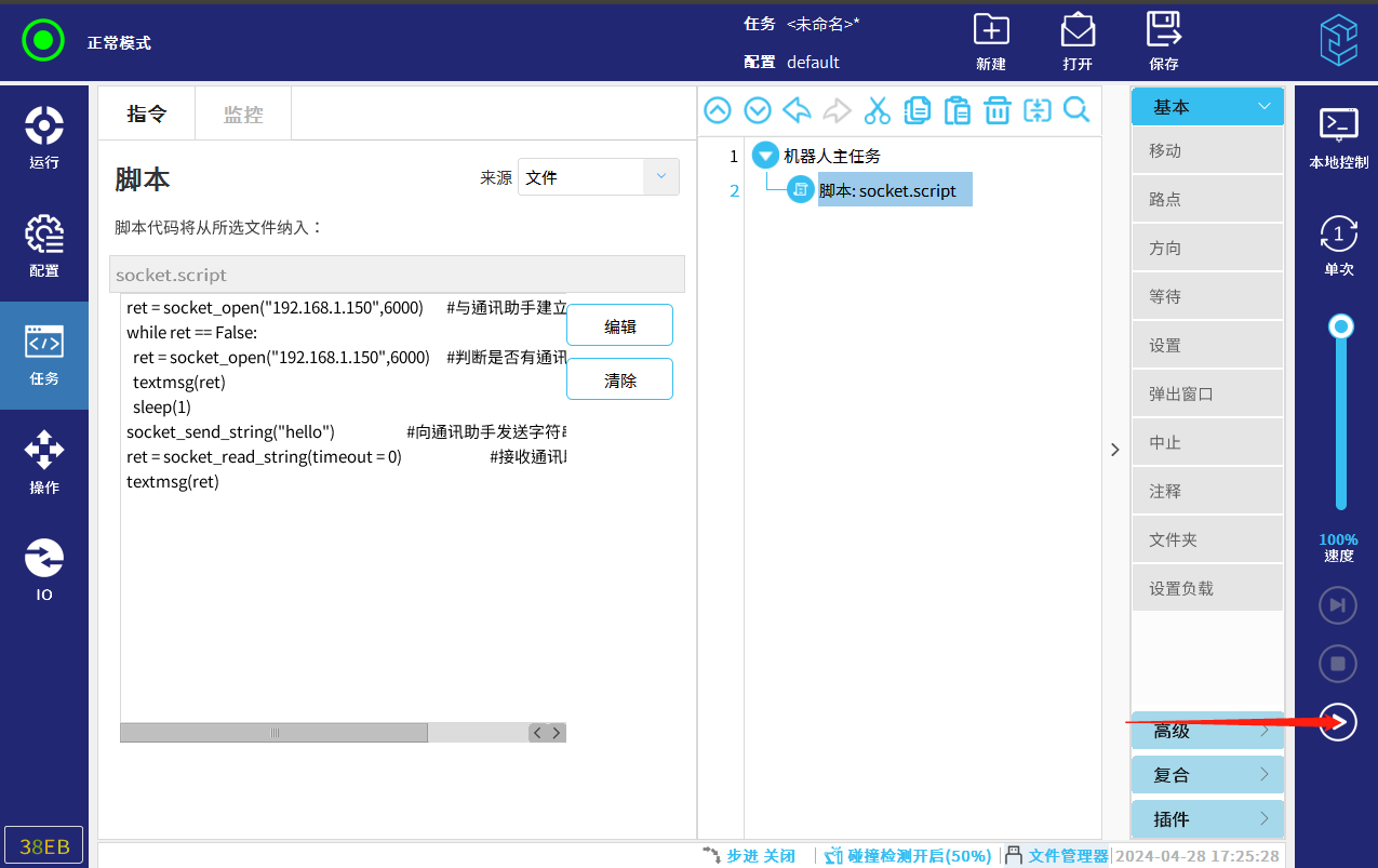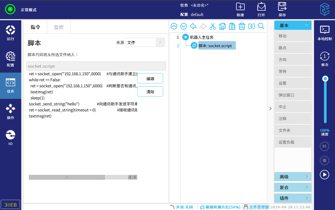 2.6. 编写通讯脚本。详情参考CS脚本手册-通讯目录下的socket,可在艾利特官网下载。技术资料-艾利特机器人