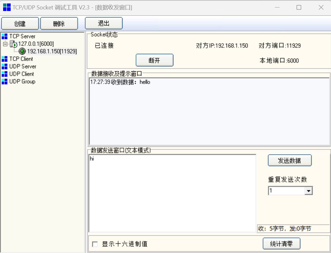 2.11 在发送窗口输入要发送的内容,点击发送数据