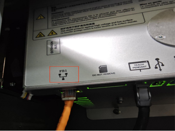 第一步-机器人与PC通过网线连接(机器人连接接口为FB1口,通过交换机中转也可以实现)