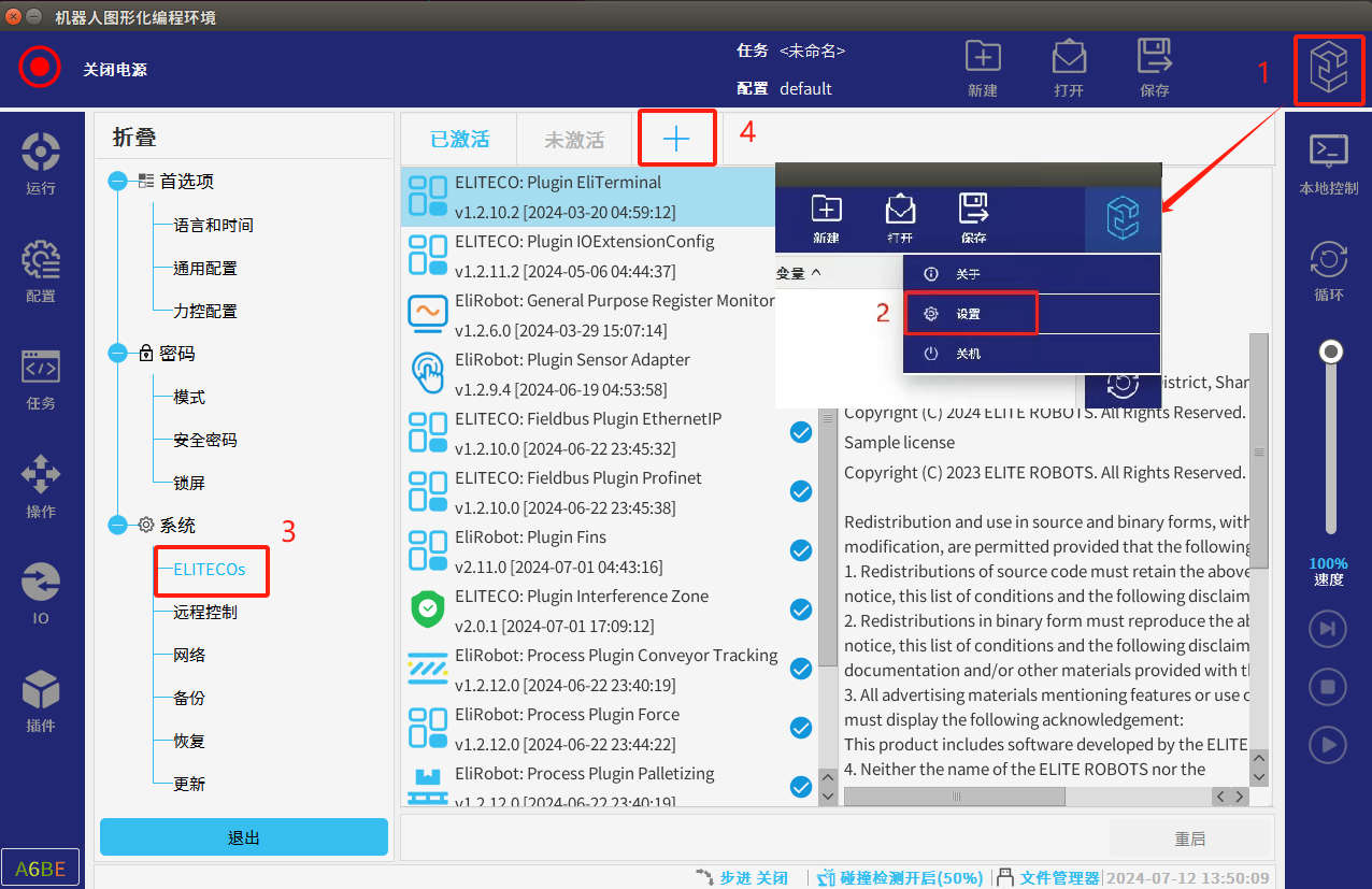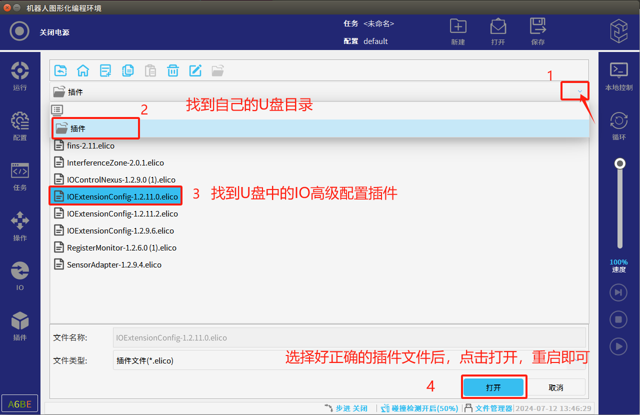 1 首先需要安装IO高级配置插件(插件需联系艾利特相关人员获取),如图2-2与图2-3所示。