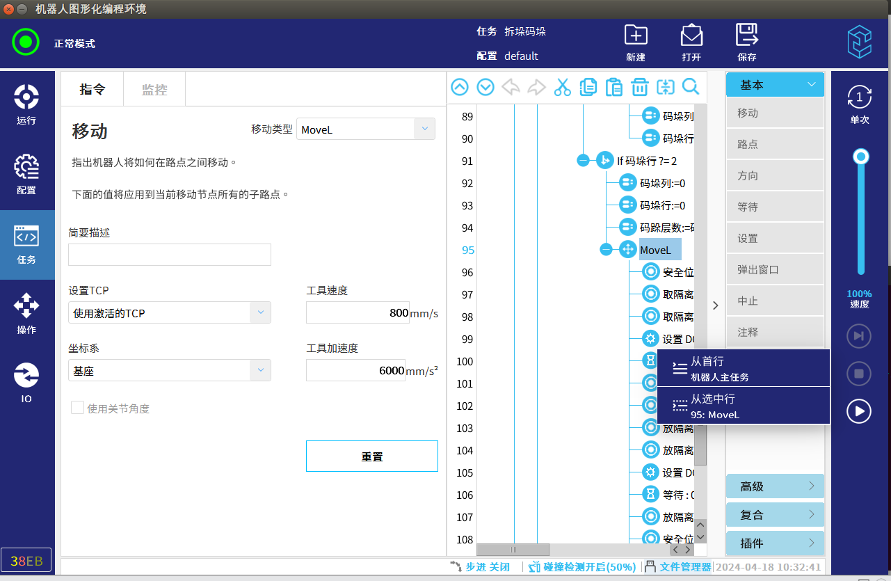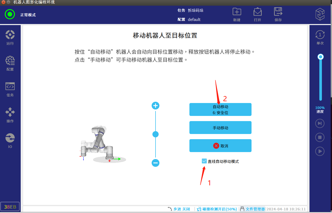 3.2在点击播放按钮回原时需要回到程序的第一个点位,回原时需注意有无干涉
