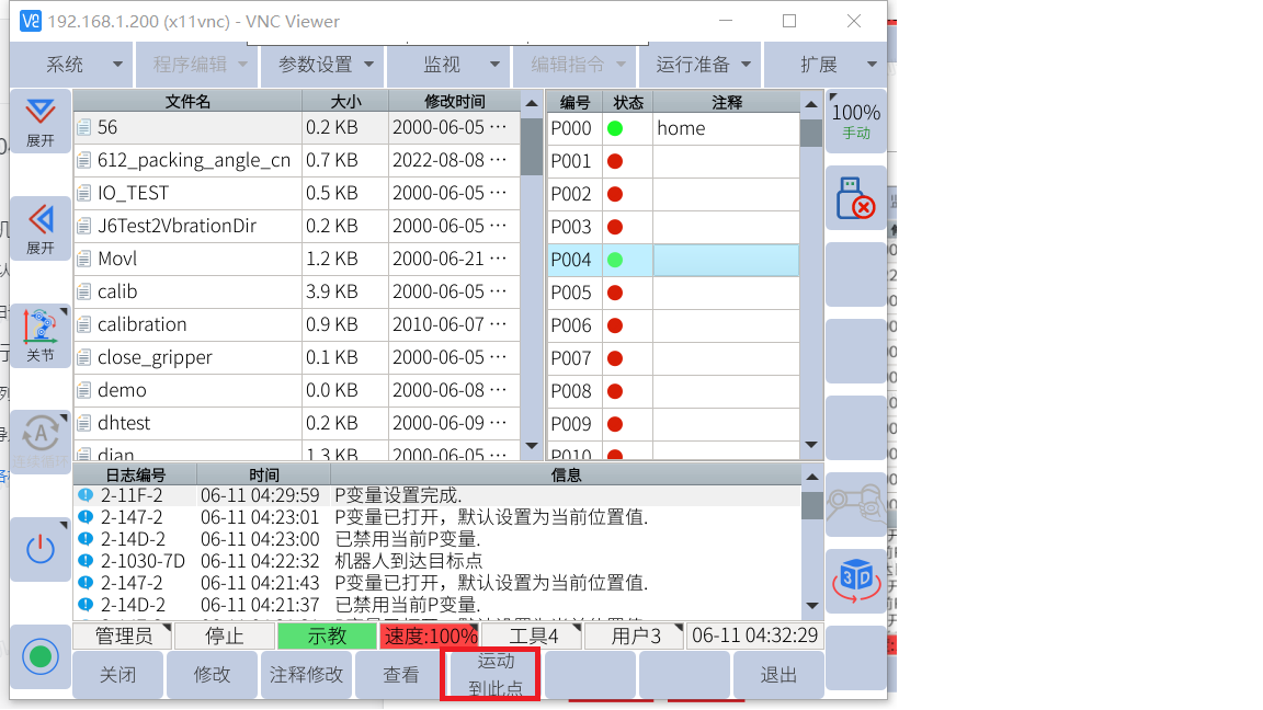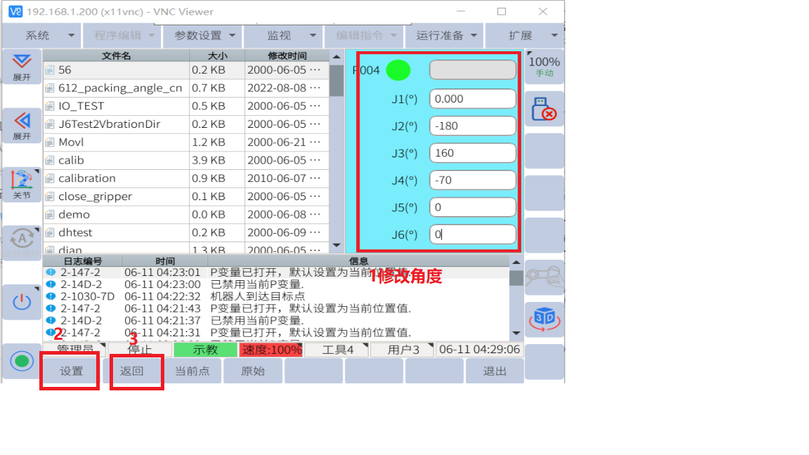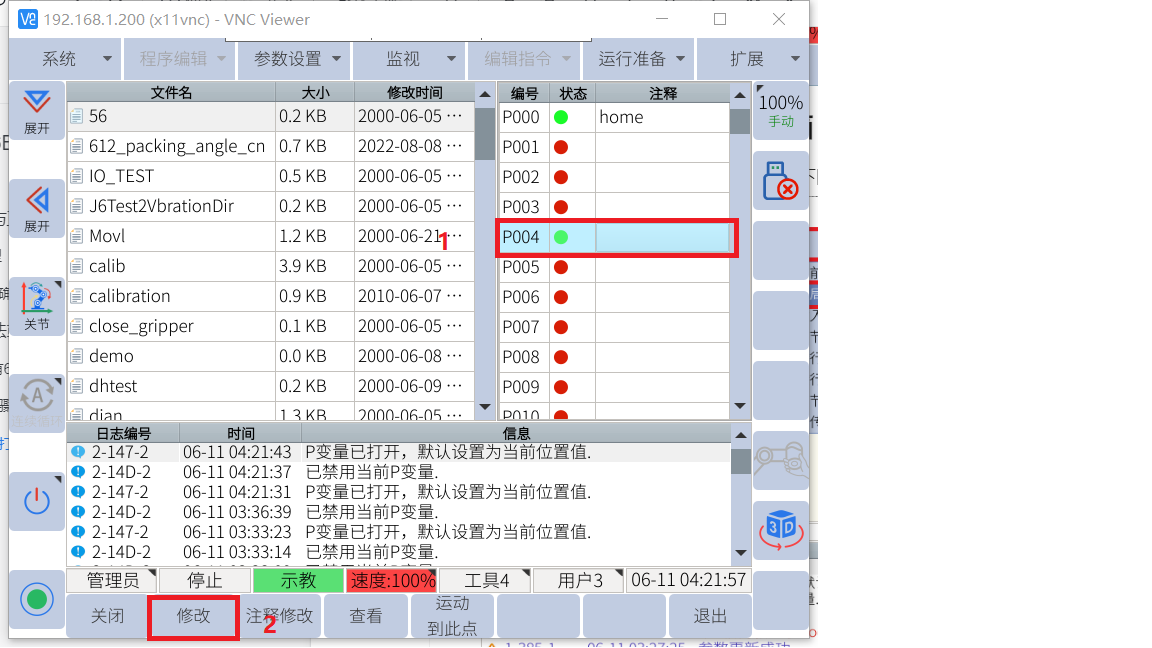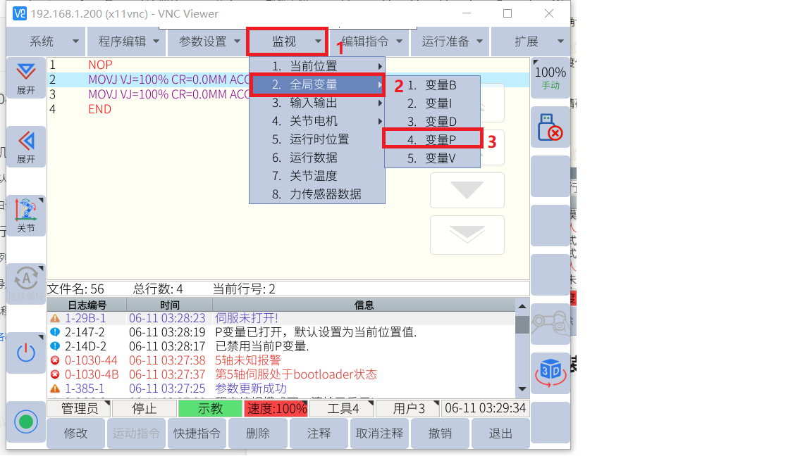 可以用p变量里输入6个关节角度回打包位,如下图步骤选用一个未使用的P变量并打开。根据图片标签步骤执行。
